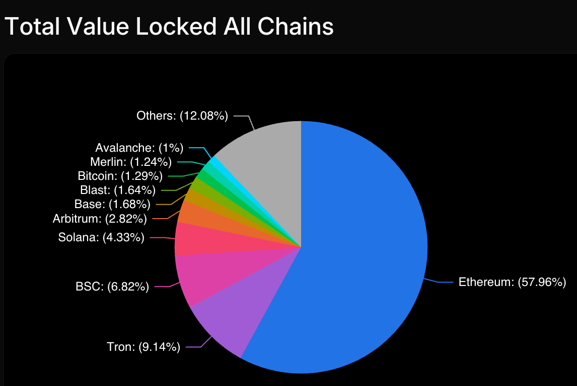 It’s no surprise that Ethereum is dominant, but check out where the rest of TVL is flowing across 280 chains below:
